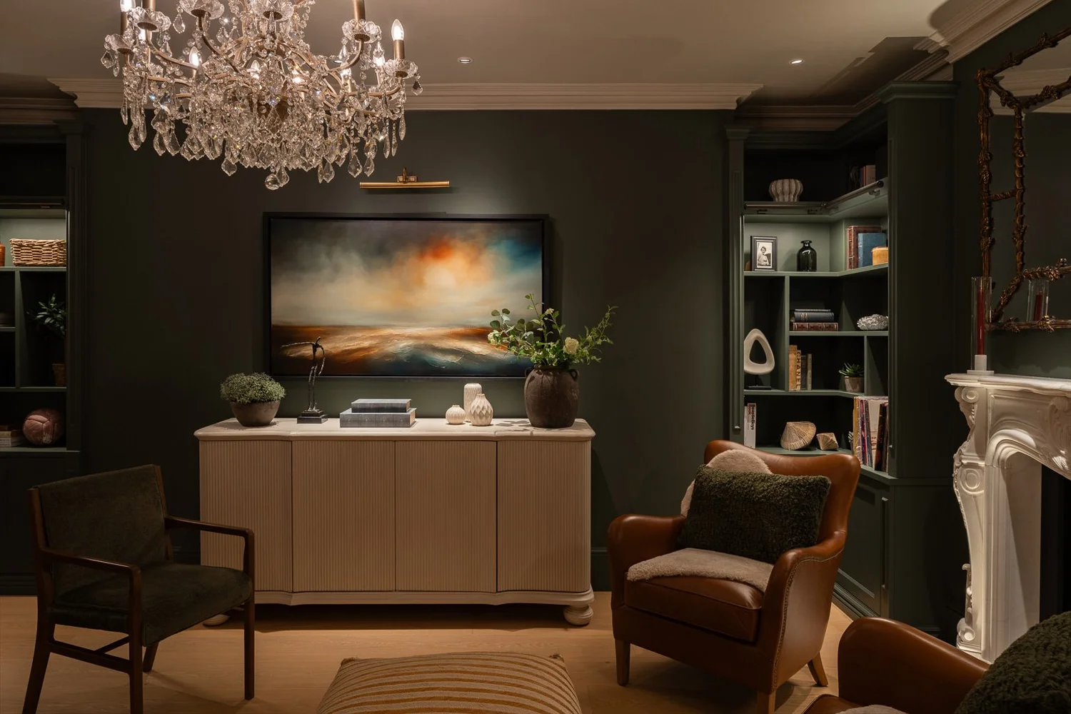00:07:59: Jo Calver: So let's take a drawing room or a sitting room or a lounge. So it's essentially somewhere where you'd go a little bit more formal than your kind of open plan spaces. So the lamp lighting that everybody loves and is the look that everyone is going for, quite often we try and build joinery into that room. And the joinery gives us an opportunity to add that lamp light glow. and it can be dimmed right down and you can have it slightly higher, you can have it a warmer Kelvin. That is one circuit that we always do. Quite often in our highly complex designs, we might add as many as two circuits or three circuits into that one joinery piece because what they will do is, for example, if you had books on a shelf, when you light it from the front, you light the binds of the books and it looks absolutely amazing. If you've got shelving that has pots and accessories. But if you want to create this kind of like really moody, amazing evening scene, you can light from the back and throw the pot into silhouette. You can create these different looks, these quite multi-dimensional looks. We're just talking about two or three circuits within the joinery at this stage. So the other things that I love. using very very very tiny miniature up lights in the windows and I love that because we quite often have the linen fabric against the window and with the up lights in it just catches all of the linen in the evening and it just looks incredible. I think in a drawing room it's really nice to have quite a large pendant but we might support that pendant because that pendant might be a chandelier, it might be glass. and it doesn't really deliver light to the coffee table underneath with the books and the beautiful candles. So we put in architectural lights to suit that. And we would put it on a separate circuit. We might have some more lights or picture lights. Then there might be a piece of artwork that doesn't actually have a picture light, but you want to highlight it. There might be a periphery circuit as well. That's seven circuits already. But it's what gives you the flexibility and the control to set different moods.